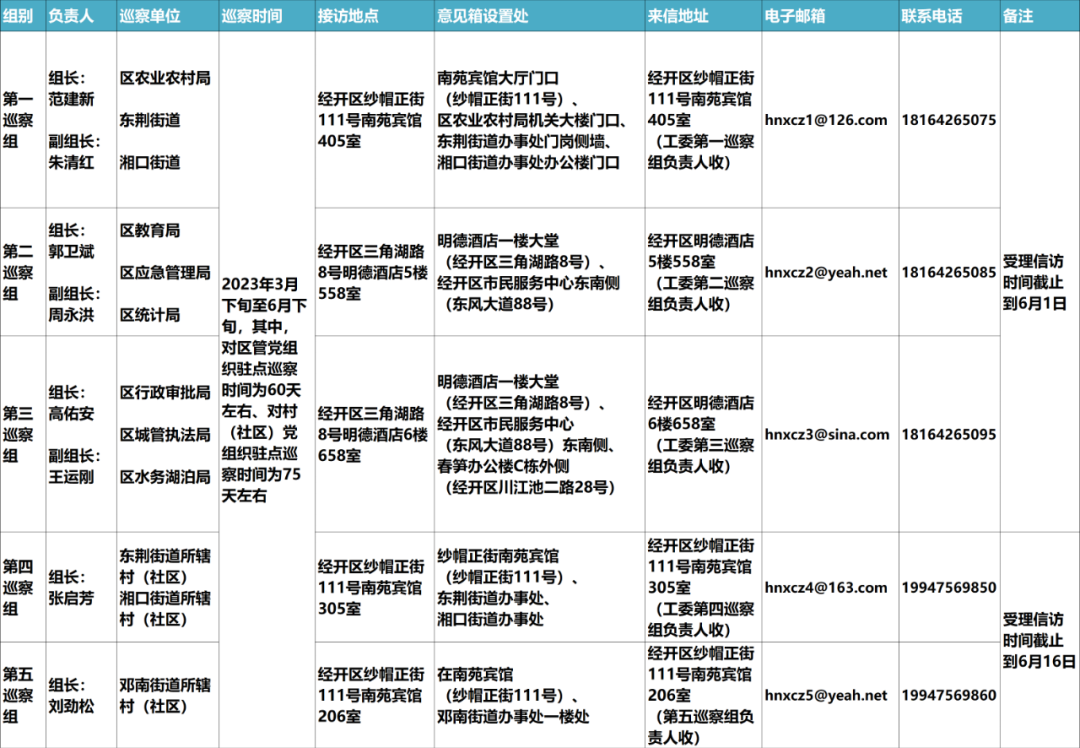 巡察期间,主要受理反映被巡察党组织领导班子及其成员和其他干部有关问题的来信来电来访,重点是关于违反政治纪律、组织纪律、廉洁纪律、群众纪律、工作纪律、生活纪律等方面的举报和反映。欢迎广大干部、群众按照巡察受理范围,直接向巡察组反映有关情况和问题,鼓励实名举报。对不属于巡察受理范围的信访问题,将按规定交由有关部门统一处理。各巡察组进驻情况如下: