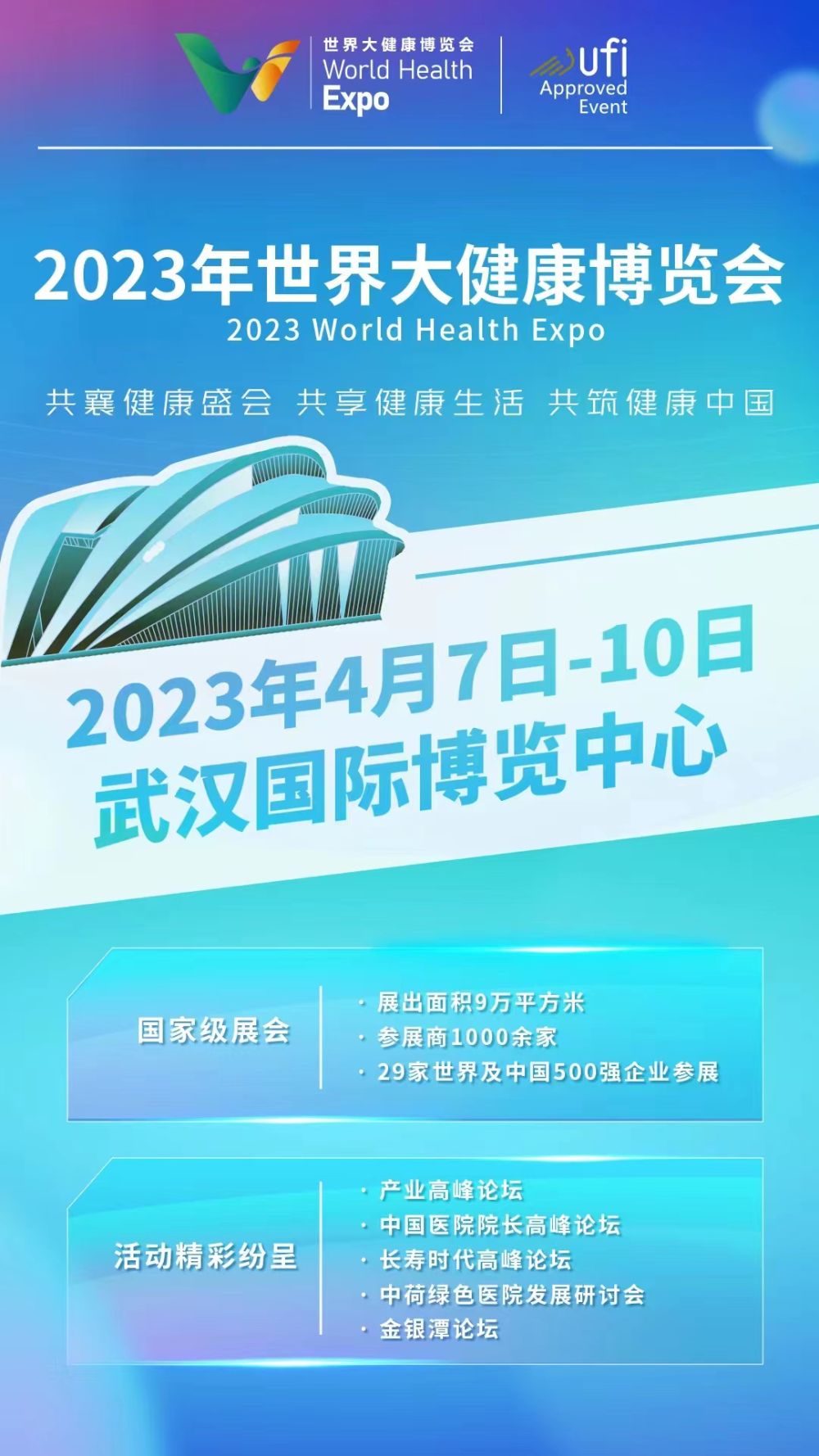 2023年世界大健康博览会将于4月7日在武汉国际博览中心开幕,会期4天。本届健博会以“健康共同体 科技创未来”为主题,期待与社会各界共襄健康盛会、共享健康生活、共筑健康中国。