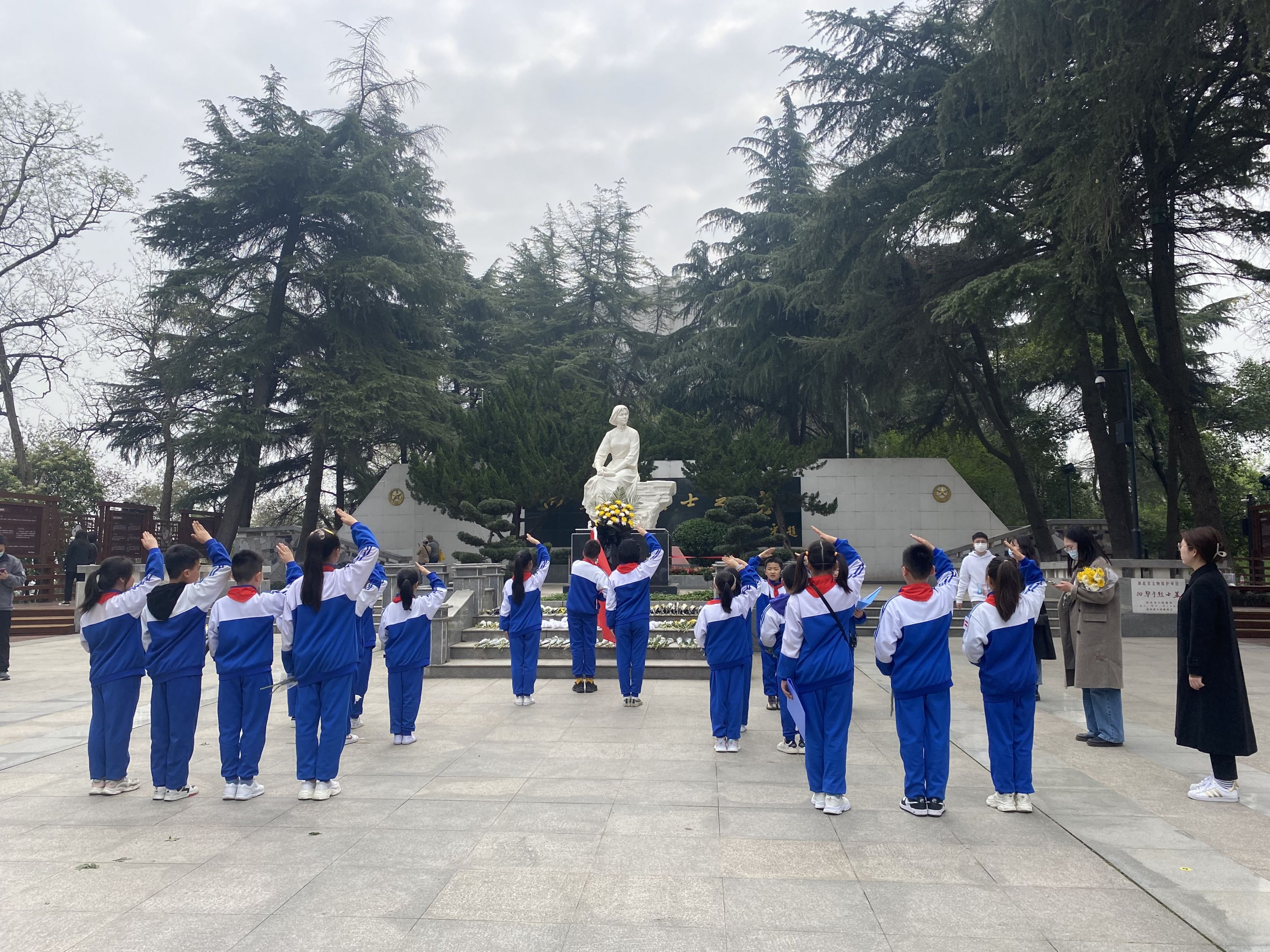 在烈士墓前,一群少先队员庄严宣誓,唱起了中国少年先锋队队歌,庄严肃穆,让人动容。