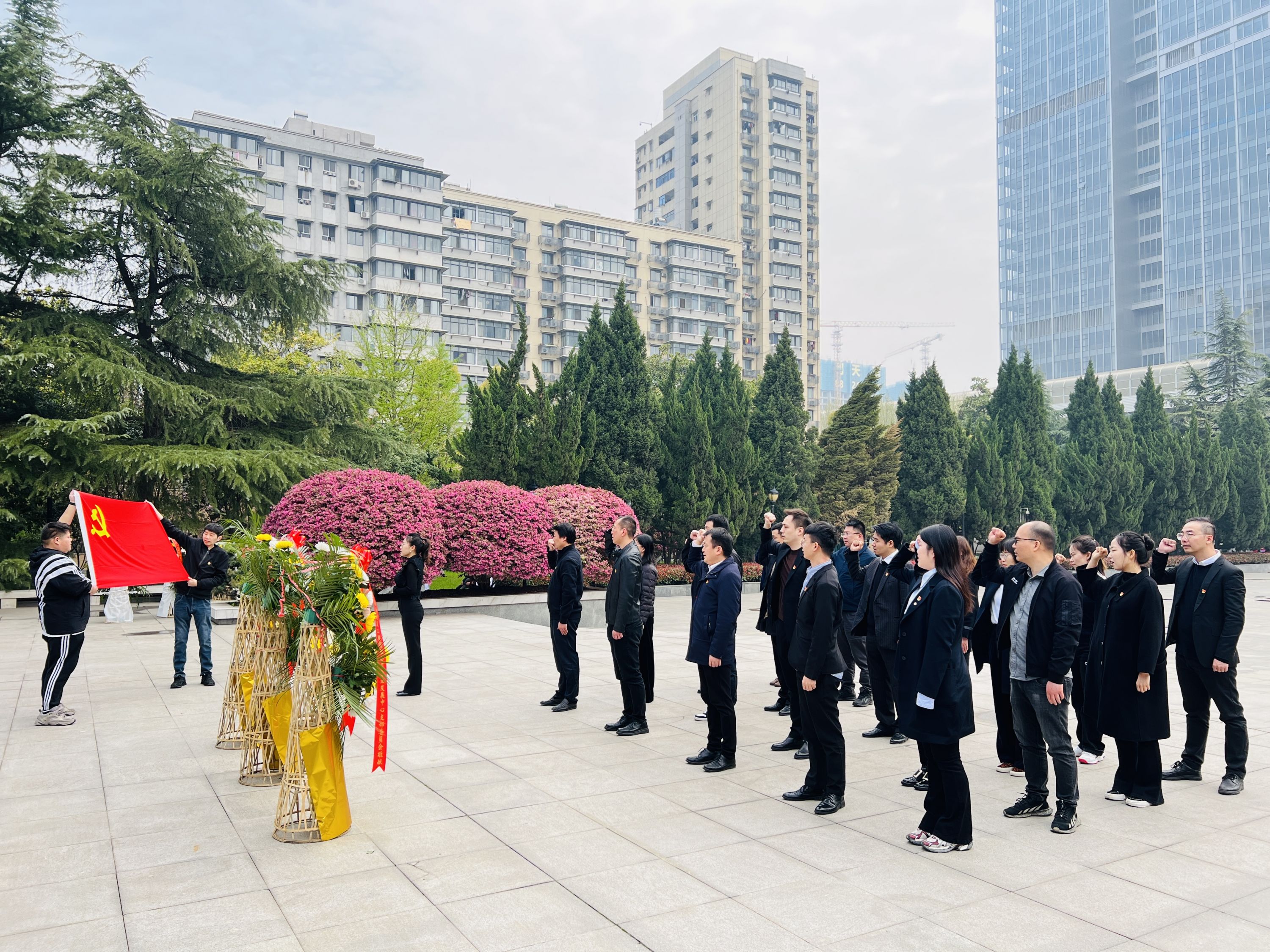 在二七烈士陵园纪念碑前,社区党支部书记带领全体党员,高擎右手,庄严宣誓。随后,大家依次向英烈敬献花篮、鞠躬悼念、寄托哀思。二航专业发展中心党支部书记带领党员们深情朗诵《追思词》,深切缅怀为新中国建设前仆后继、英勇献身的革命烈士,追思他们的丰功伟绩。