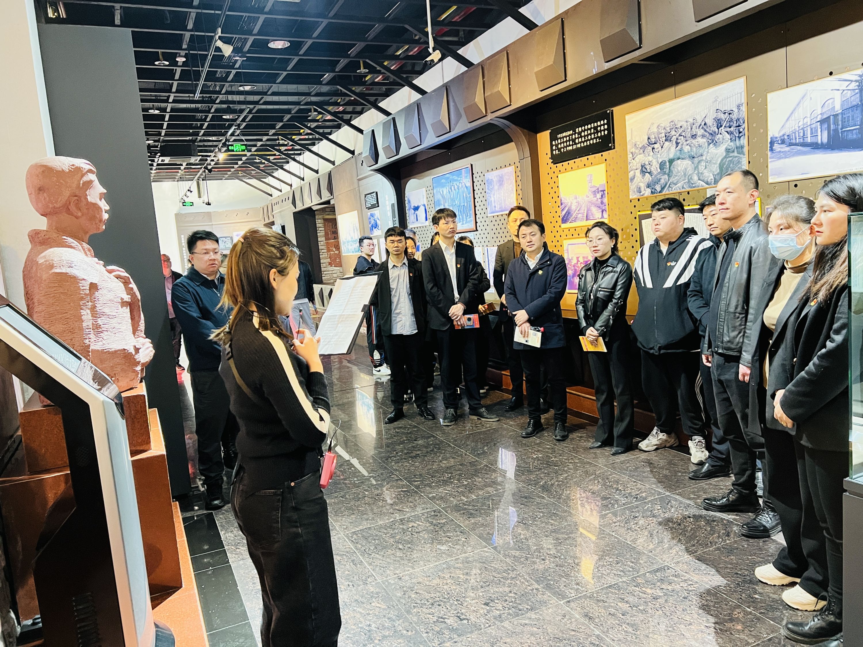 在二七纪念馆内,大家认真聆听经开金融公司党支部宣传委员讲解工人领袖林祥谦和劳工律师施洋的英雄事迹,感受有血有肉的英烈形象。看着那一张张照片、一座座雕塑、一件件实物,大家仿佛回到了那个浴血奋战的年代。