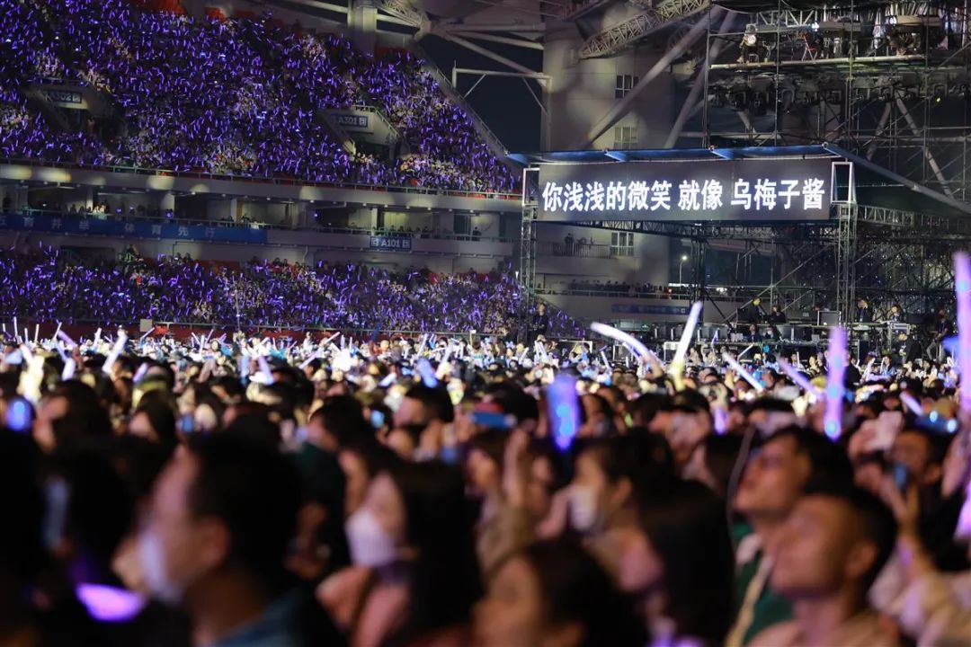 “你浅浅的微笑就像乌梅子酱,我尝了你嘴角唇膏薄荷味道……”在近三个小时的演唱会上,屡次上演了数万人合唱的盛大场景。