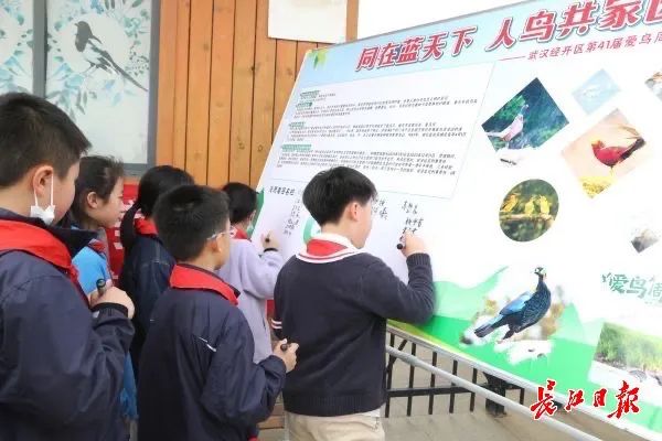 ▲2023年武汉经开区“爱鸟周”活动现场,孩子们踊跃在爱鸟护鸟志愿者签名栏写下自己名字。