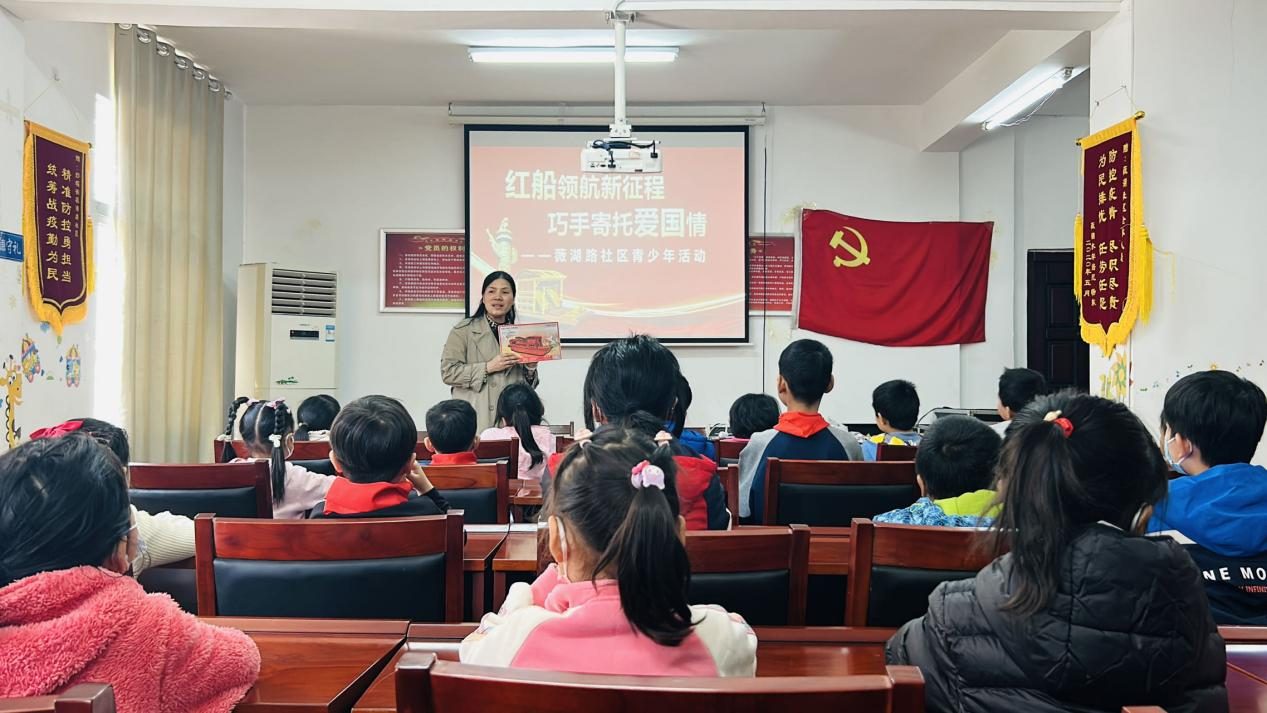 活动中,志愿者老师与大家一起分享嘉兴南湖红船的故事,通过聆听红船知识,讲述“红船精神”的内涵及来历,传承红色文化,践行红船精神。