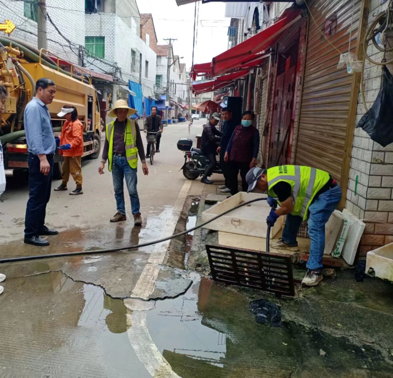 接到居民反映后,社区工作人员立即赶往现场实地考察下水道堵塞的情况。查明了堵塞原因后,社区迅速联系红色物业相关工作人员清淤疏通此处的下水管道,经过几个小时的疏通、清理,堵塞的下水道终于被清理干净了,居民也恢复了正常的生活。