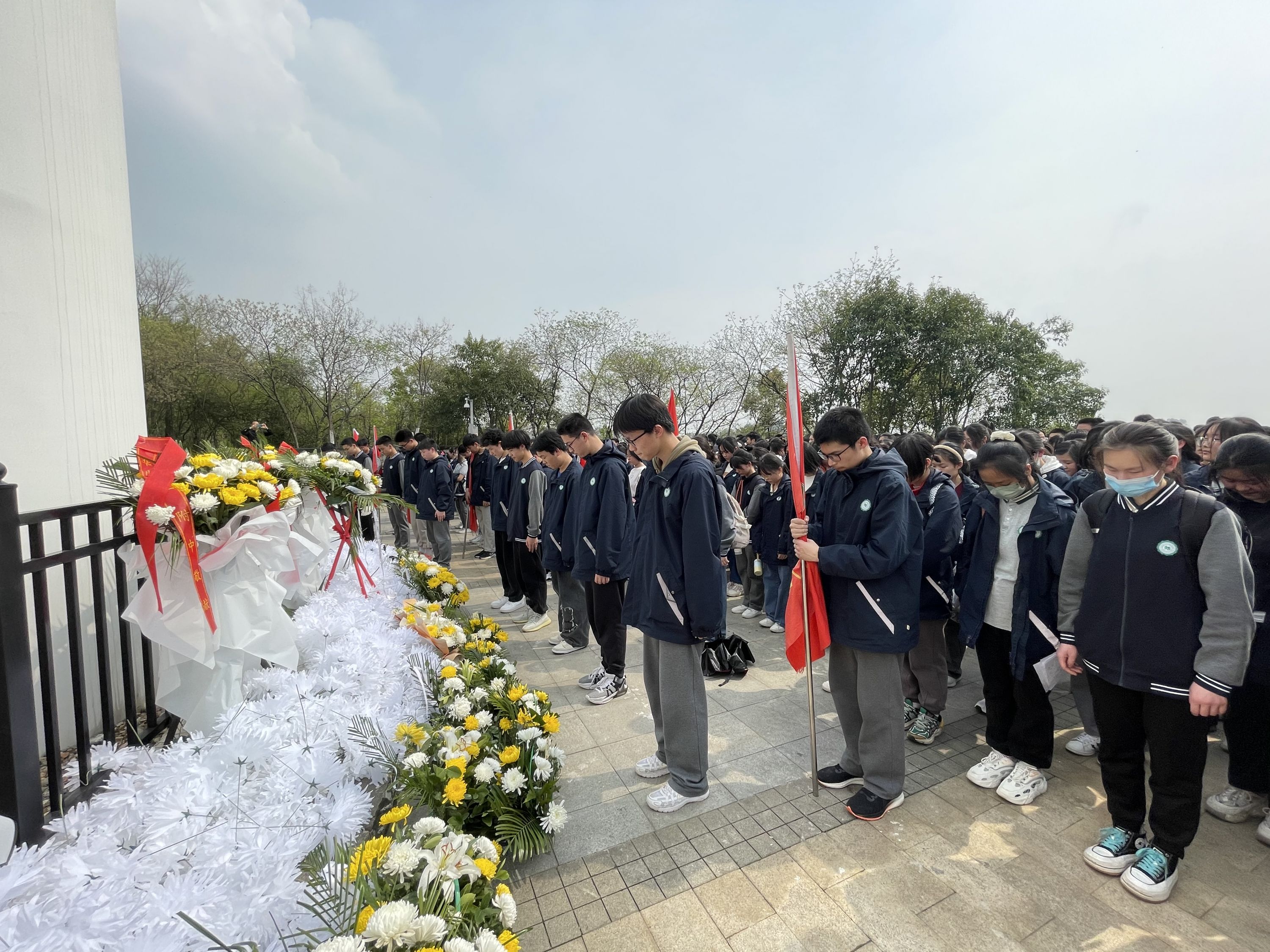 活动中,该校高一年级全体师生怀着无限崇敬的心情,瞻仰了中山舰阵亡将士纪念碑,各班代表依次向烈士纪念碑敬献鲜花。在党旗的见证下,全体师生进行了庄严的宣誓仪式。仪式结束后,以各班为单位,依次前往参观了中山舰的复原舰体,打捞的文物、文献资料等。