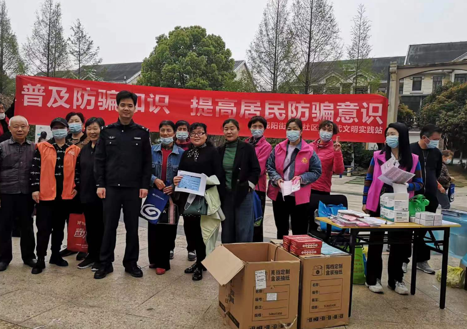 车谷融媒4月9日讯 4月6日,红升社区新时代文明站联合华星物业公司在金桥太子湖壹号小区开展“打击电信诈骗犯罪 构建和谐平安社区”反诈骗宣传活动。