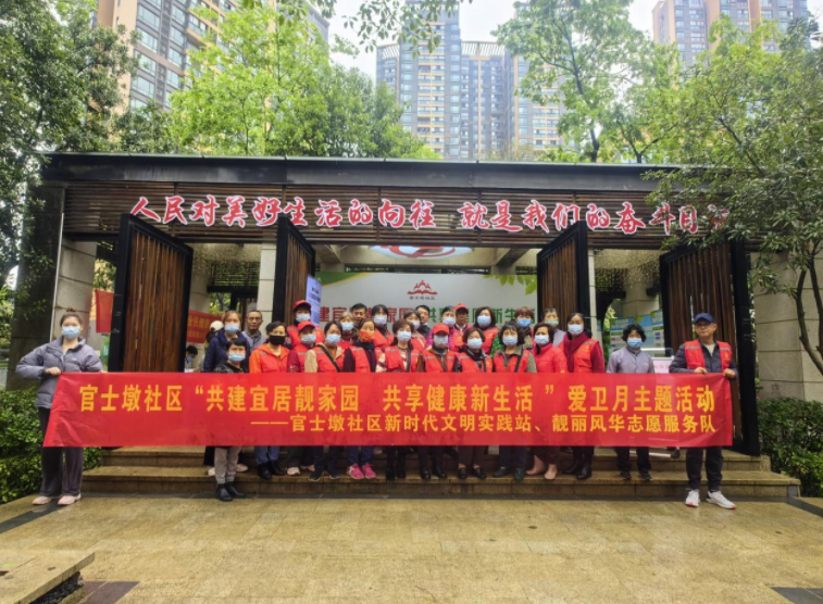 当天,官士墩社区还召集社区党员志愿者、物业保洁人员、垃圾分类志愿者,开展清洁家园活动。社区靓丽风华志愿服务队发挥志愿者骨干力量,动员带领志愿者队员们对小区主次干道、角落及小区墙面“牛皮癣”进行重点清扫。