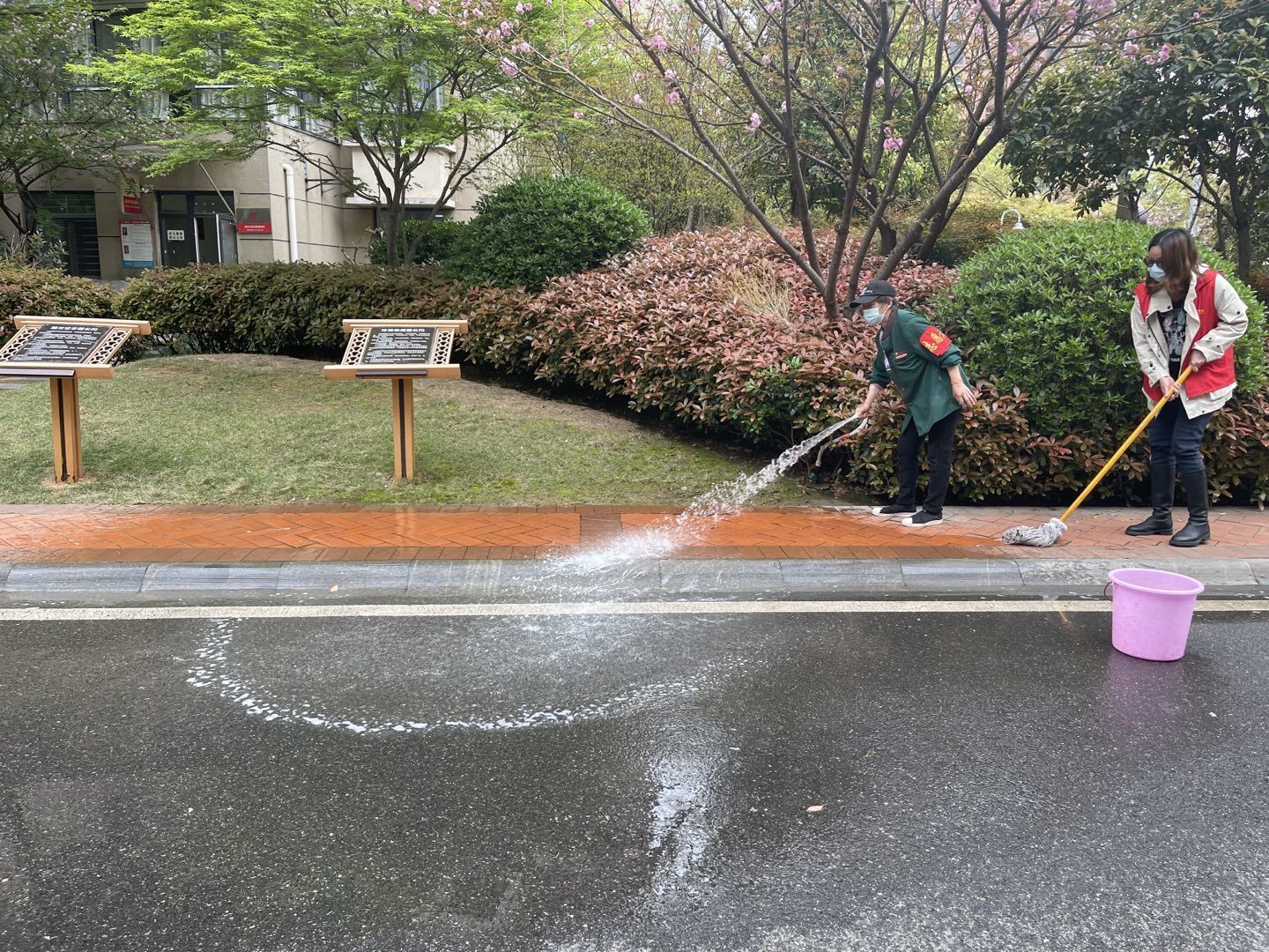 活动中,志愿者们手持夹子、扫把、垃圾袋等工具,将地上的烟头、混杂在绿化带里的塑料袋等垃圾一一捡出,并拿起水管将道路冲洗得干干净净,社区面貌焕然一新。