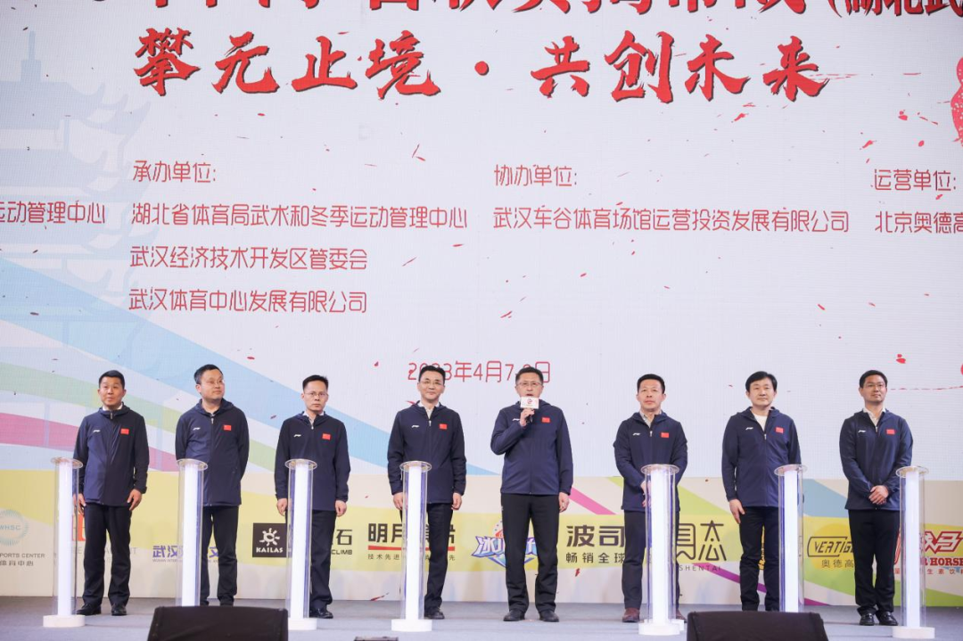 国家体育总局登山运动管理中心主任、党委书记韩建国,湖北省体育局党组书记、局长水兵,国家体育总局登山运动管理中心攀岩运动部主任厉国伟,武汉经开区有关领导出席开赛仪式。