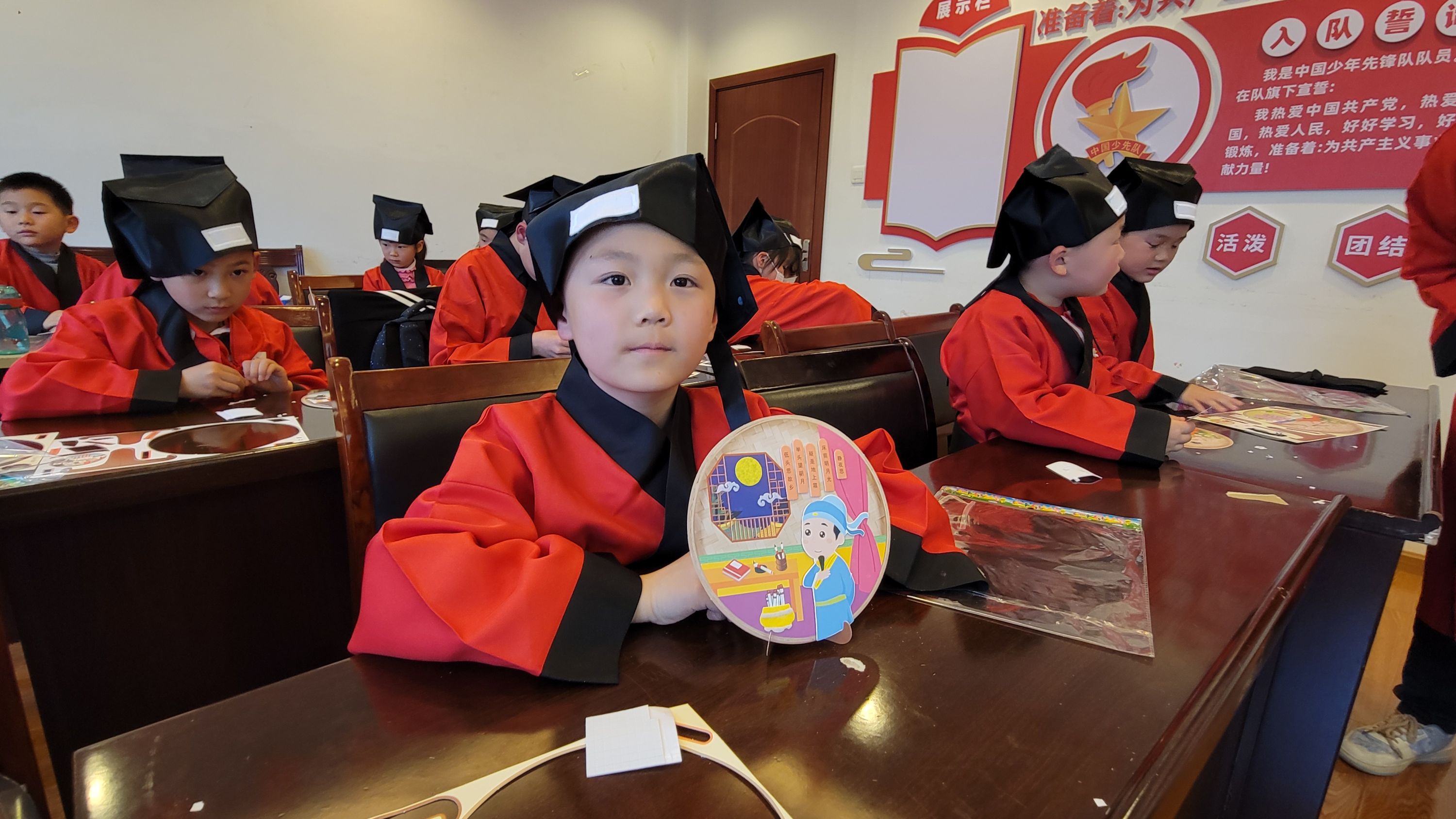活动现场,小朋友们各自分享一首最近新学的诗词。“清明时节雨纷纷,路上行人欲断魂。借问酒家何处有,牧童遥指杏花村。”一位小朋友分享道,“因为刚过了清明节,这首诗写出了路上行人悼念逝去亲人难过的心情。”