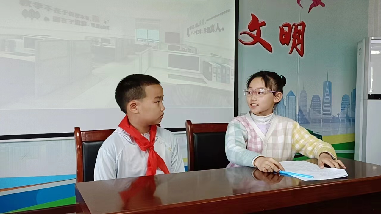 短剧《竞选》讲述了家境优渥的小学生富贵让父母通过“请客吃饭”的不正当方式竞选班长,结果竞选当天同学们纷纷选择了做事认真负责、正直勇敢的佳佳担任班长。事后富贵也认识到了自己的错误,并表示以后会严格要求自己,热心帮助同学。孩子们精彩的表演,赢得现场热烈掌声。