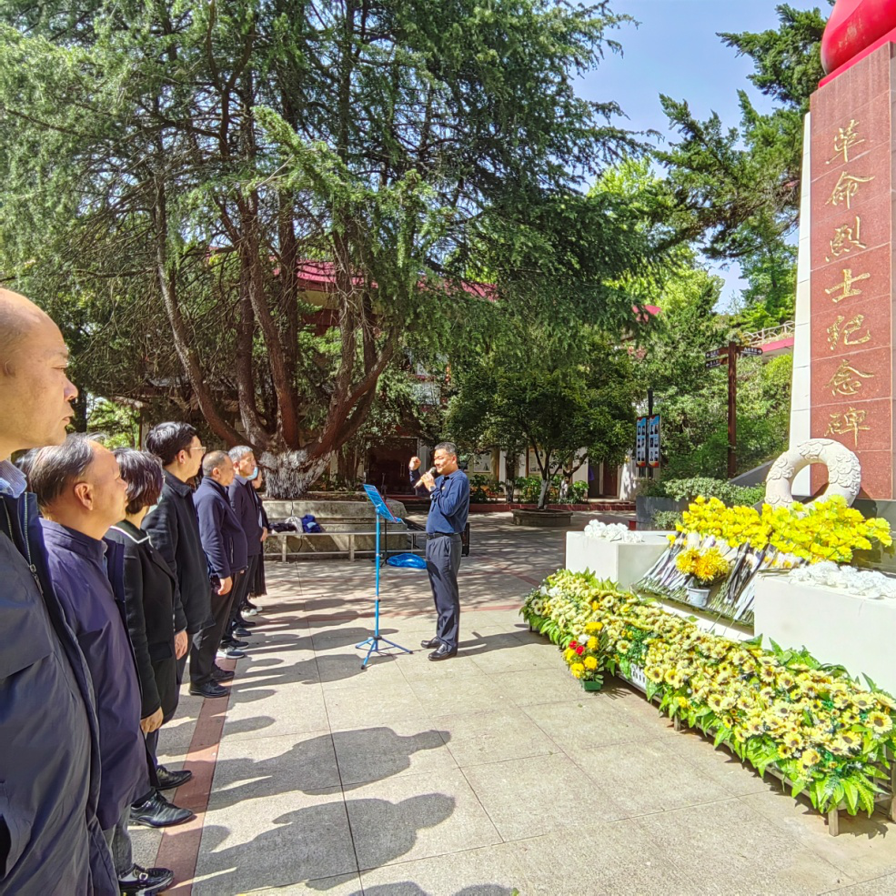 烈士陵园内松柏挺立,阳光穿过枝叶洒满墓区,庄严而温暖。参加活动的党员着深色套装,神情肃穆,整齐列队,缓缓走进革命烈士陵园。在革命烈士纪念碑下,全体党员重温入党誓词,奏唱国歌,默哀一分钟并依次献花,表达对革命英烈、各界杰出前辈的深切悼念与由衷敬意。