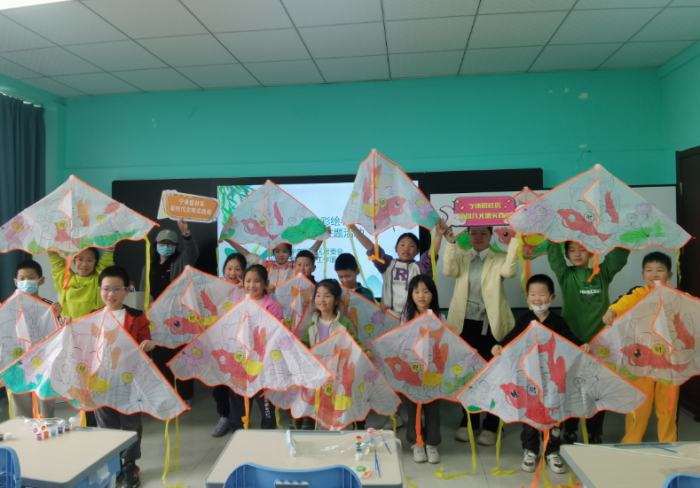 “看,我的风筝画好了,明天我要拿到公园里面去放!”“哇,好漂亮的风筝啊,你这个颜色怎么调出来的,能教教我吗?”经过一个小时的时间,颜色绚丽的风筝逐一展现在大家眼前,活动现场,小朋友们的欢声笑语此起彼伏。