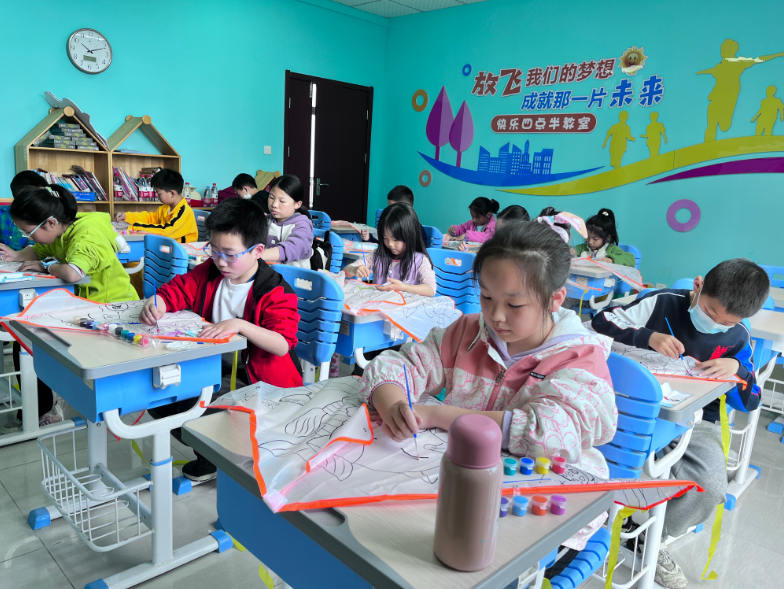 画筝面是孩子们最为期待的环节,在社工讲解结束以后,小画家们个个插上了想象的翅膀,爱我中华、卡通人物、花草动物……大家用五颜六色的画笔在风筝上勾勒出自己喜爱的图案,涂上绚丽的色彩。