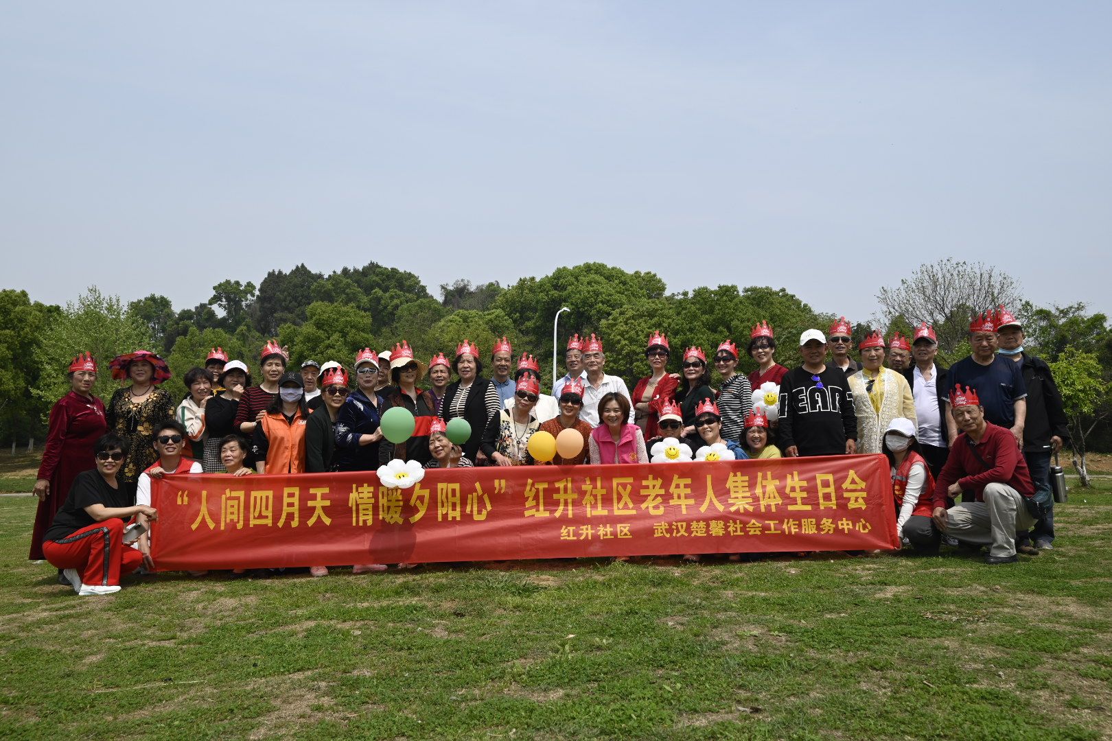 车谷融媒4月13日讯 “祝你生日快乐,祝你生日快乐……”一首热闹的生日快乐歌在耳边回荡。春暖花开,万物复苏,最是踏青好时节,4月12日上午,沌阳街红升社区养老中心联合武汉楚馨社会工作服务中心在龙灵山生态公园为社区50名老人过集体生日。