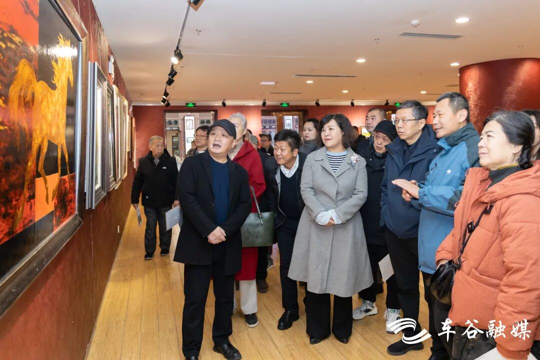 车谷融媒1月10日讯 1月10日,“丹青车谷·金马送福”迎春书画作品展在区文化馆拉开帷幕,区人大常委会主任陈明骏出席活动。
