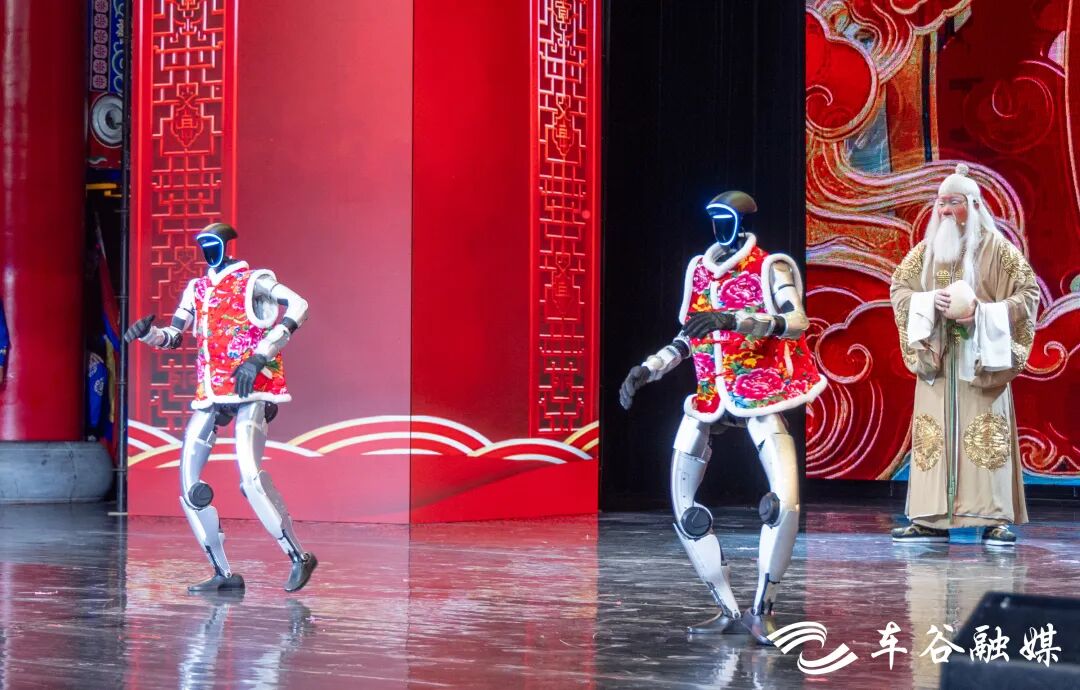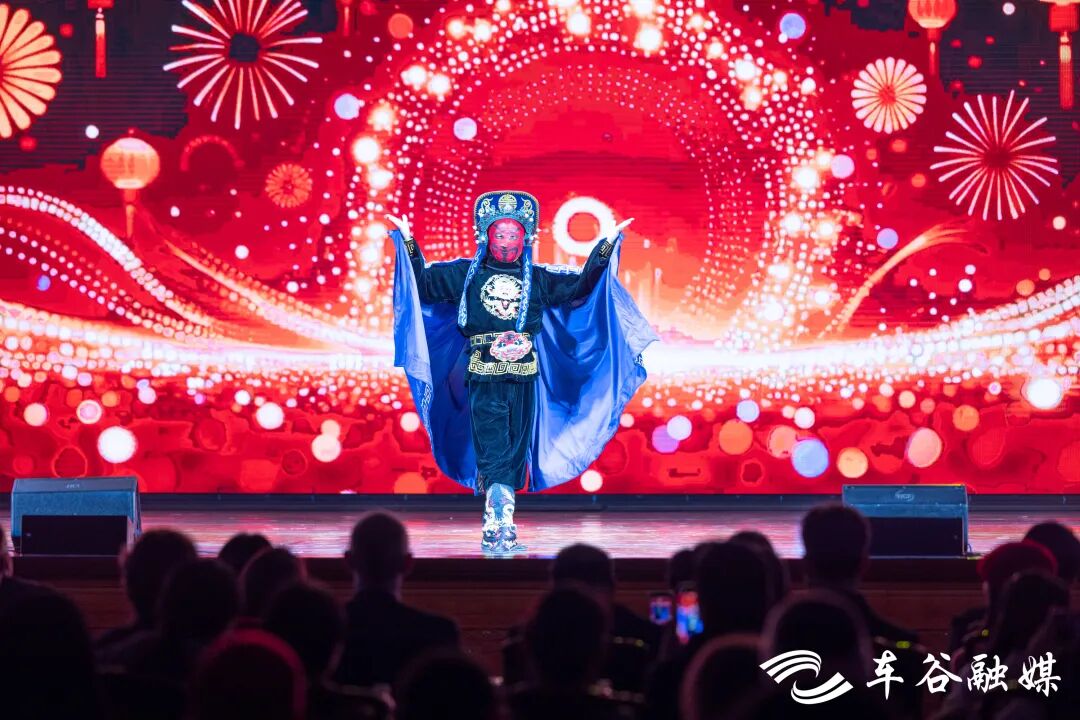 表演全程高潮迭起,传统与创新交融。伴随着《天官赐福》的吉祥韵律,身着红袄的人工智能机器人登台亮相,与老艺术家们同台献艺,为晚会拉开序幕。川剧《变脸》演员惊艳登场,拂袖回首间脸谱变幻莫测,引得满堂喝彩。