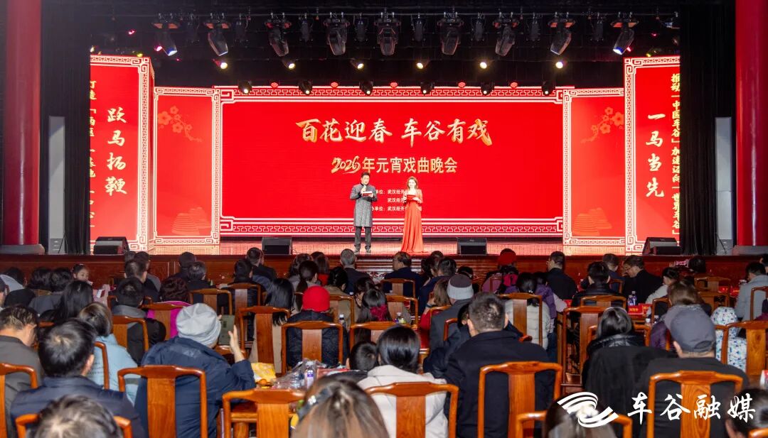 车谷融媒3月4日讯 百花迎春闹元宵,车谷有“戏”启新程。3月3日晚,汤湖戏院内丝竹悠扬、锣鼓铿锵,欢声笑语汇成一片,“百花迎春 车谷有戏”2026年元宵戏曲晚会在此精彩上演。