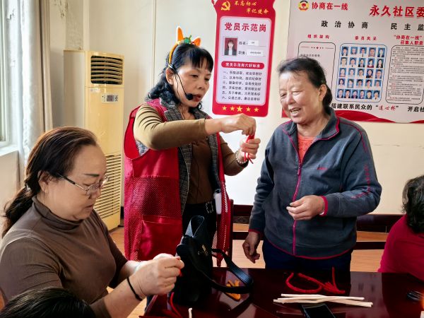 车谷融媒11月7日讯 近日,沌阳街道永久社区妇联特别邀请辖区巾帼志愿者服务队、妇女小组、舞蹈队、戏曲队等社会组织参加“扭扭棒手工发箍,共筑精神文化纽带”为主题的交流活动,通过手工制作和交流的形式,为社区女性社会组织成员提供一个展示自我、增进友谊的平台。