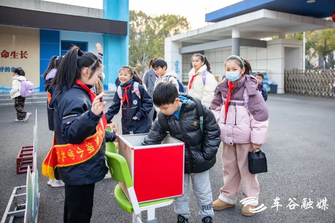 “我今天抽到了上上签!”早上7点半不到,三角湖小学的老师、学校吉祥物“水精灵”已经站在校门口欢迎“萌娃”返校。