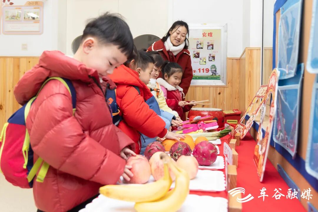 “火龙果的寓意是红红火火,苹果的寓意是平平安安,香蕉的寓意是天之骄子。”凤凰苑幼儿园园长徐思说,开学仪式将新年元素与幼儿园童趣教育理念相融合,设计系列迎新活动,营造更轻松的开学氛围。