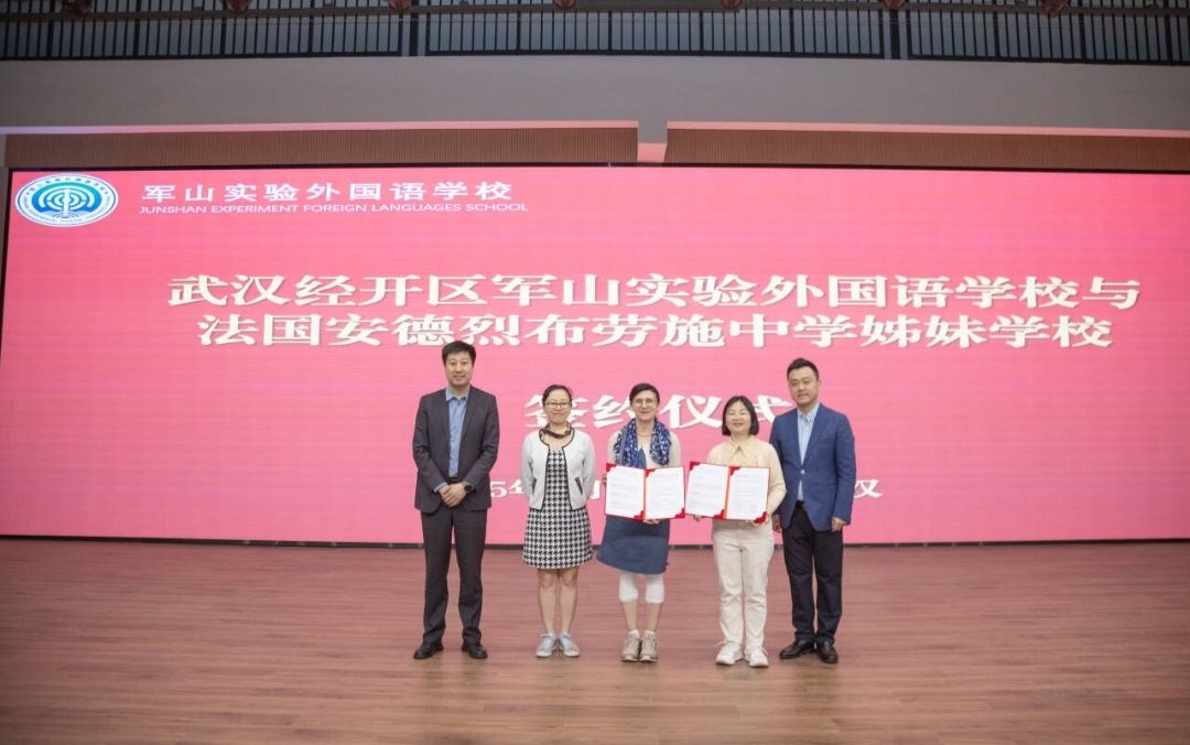 当天,军山实验外国语学校校长张艳梅与法方学校代表Antégnard共同签署合作协议,标志着两校正式缔结为姊妹学校,即将开启中法教育合作的新纪元。