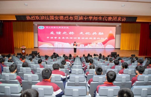 车谷融媒4月11日讯 4月8日,武汉经开区军山实验外国语学校举行以“友谊之桥,文化共融”为主题的中法友好学校合作签约仪式,深化中法教育文化交流,搭建国际友谊桥梁。来自法国Collège André Boulloche de Bart学校的19名师生代表跨越山海,与军山实验外国语学校共赴一场文明互鉴、心灵相通的盛会。