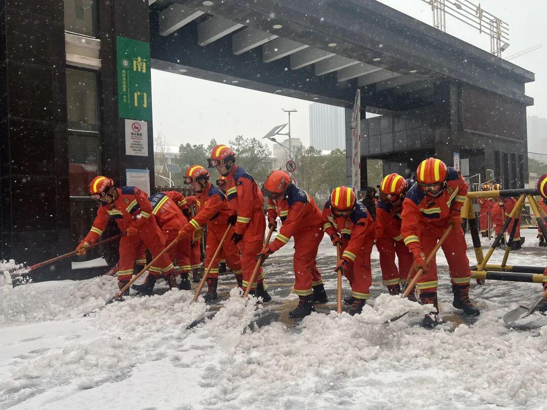 为应对极端天气,区应急局统筹救援力量,提前调度部署华中应急救援中心近千名队员、消防救援局100余人的队伍,对医院、校园、大型商超等重点民生场所,持续开展铲雪除冰攻坚,全力保障城市有序运转。
