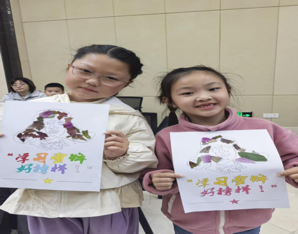 随后进入树叶贴画创作环节,志愿者与孩子们一对一结对,先协助大家筛选、清洁落叶,讲解贴画制作技巧,同步穿插讲述雷锋事迹,潜移默化传递奉献精神。孩子们利用落叶为笔、以童心为墨,精心粘贴雷锋帽子、塑造雷锋形象,用水彩笔点缀细节,将对雷锋的崇敬和对绿色家园的热爱,融入创意十足的树叶贴画中。创作完成后,孩子们主动分享自己的作品和理解的雷锋故事,现场氛围轻松温馨。