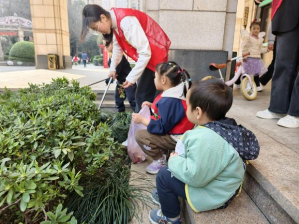 活动伊始,志愿者带领社区儿童组成“护绿小队”,在社区划定区域开展落叶捡拾与环境清理。孩子们严格遵守“不摘绿植、不毁绿化”的要求,细心收集形态完整的落叶,同时随手清理周边纸屑、塑料瓶等垃圾,用实际行动践行环保理念,传递乐于助人”的志愿精神。