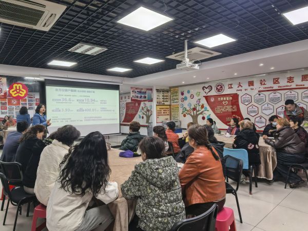 活动伊始,社区志愿者为在场居民带来了一场实用的金融知识讲座。针对大家普遍关心的养老问题,志愿者结合案例,用通俗易懂的语言讲解了如何科学规划养老资金、防范金融诈骗等知识,帮助大家树立正确的理财观念,提升风险防范意识。“以前总觉得理财离自己很远,今天听了才知道,早点规划才能让晚年生活更有底气。”居民王阿姨一边记笔记一边感慨道。这场干货满满的宣讲,为居民们的幸福晚年筑起了一道坚实的安全防线。